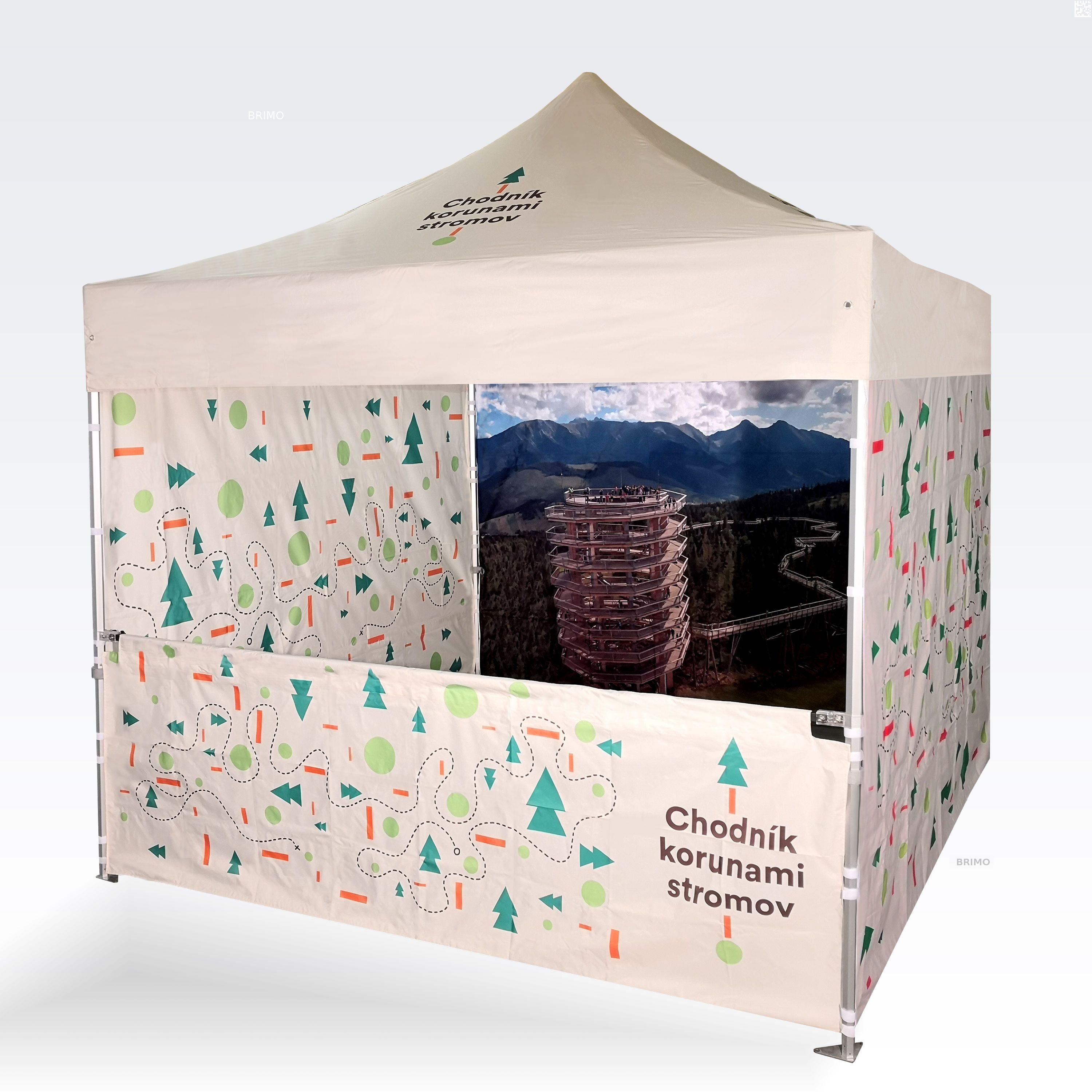 Seja para um pequeno tamanho de 2x2 m ou para uma grande tenda publicitária de 4x8 m, podemos imprimir imagens coloridas, aplicar elementos gráficos individuais ou cobrir toda a superfície da tenda com qualquer padrão desejado.